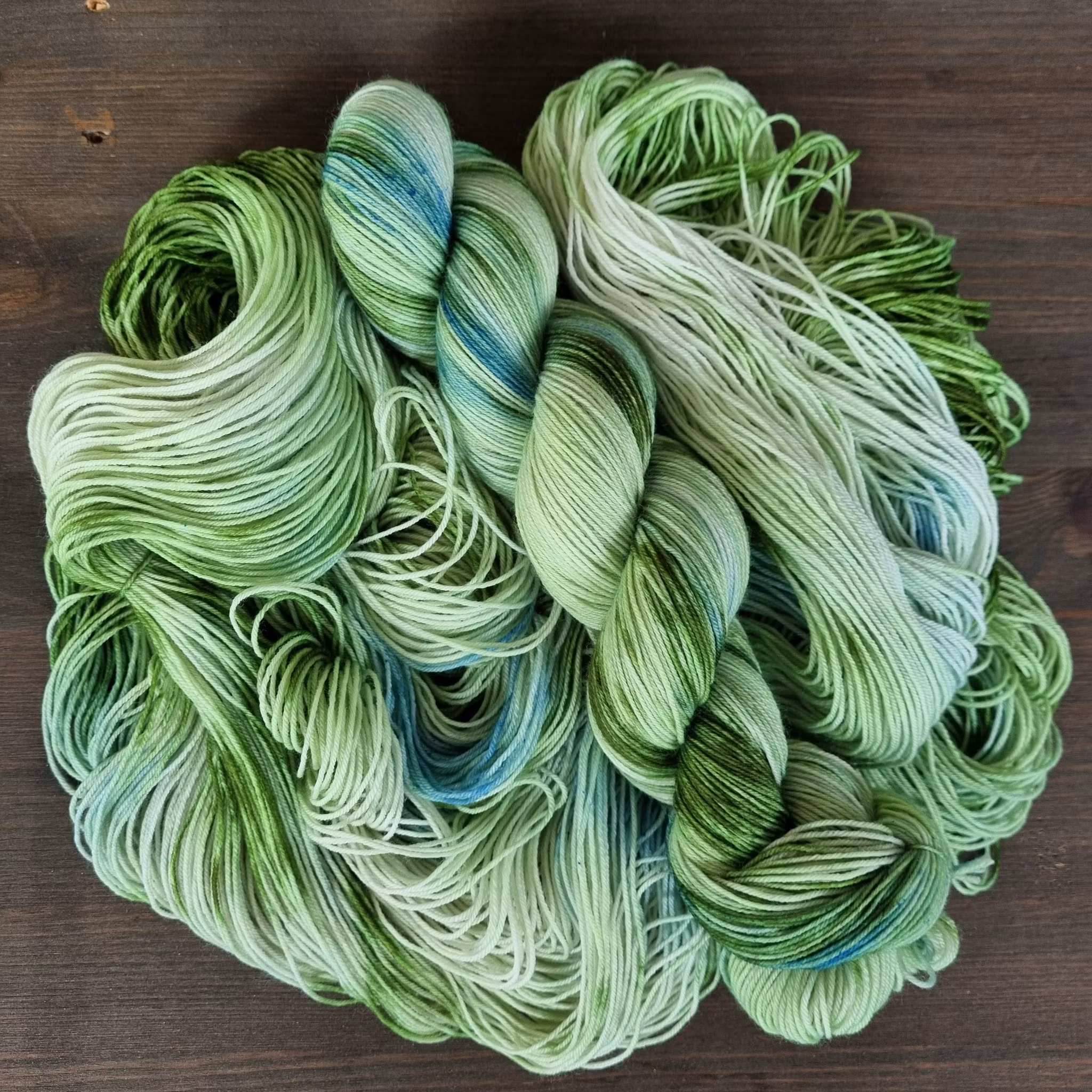 75% superwash merino, 25% nylon. Til håndfarga garn anbefales håndvask. Garnet kan blø noe farge til å begynne med.