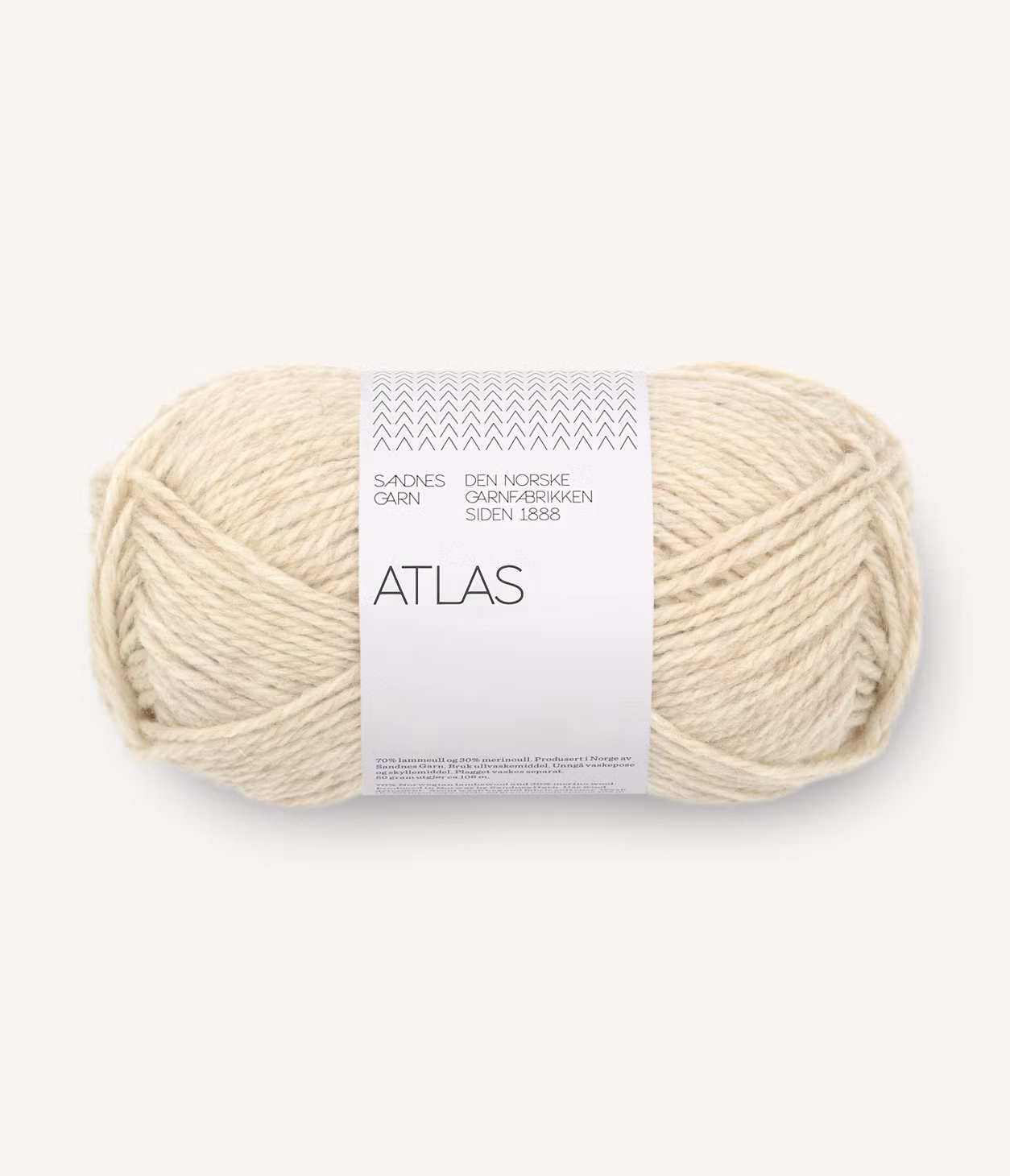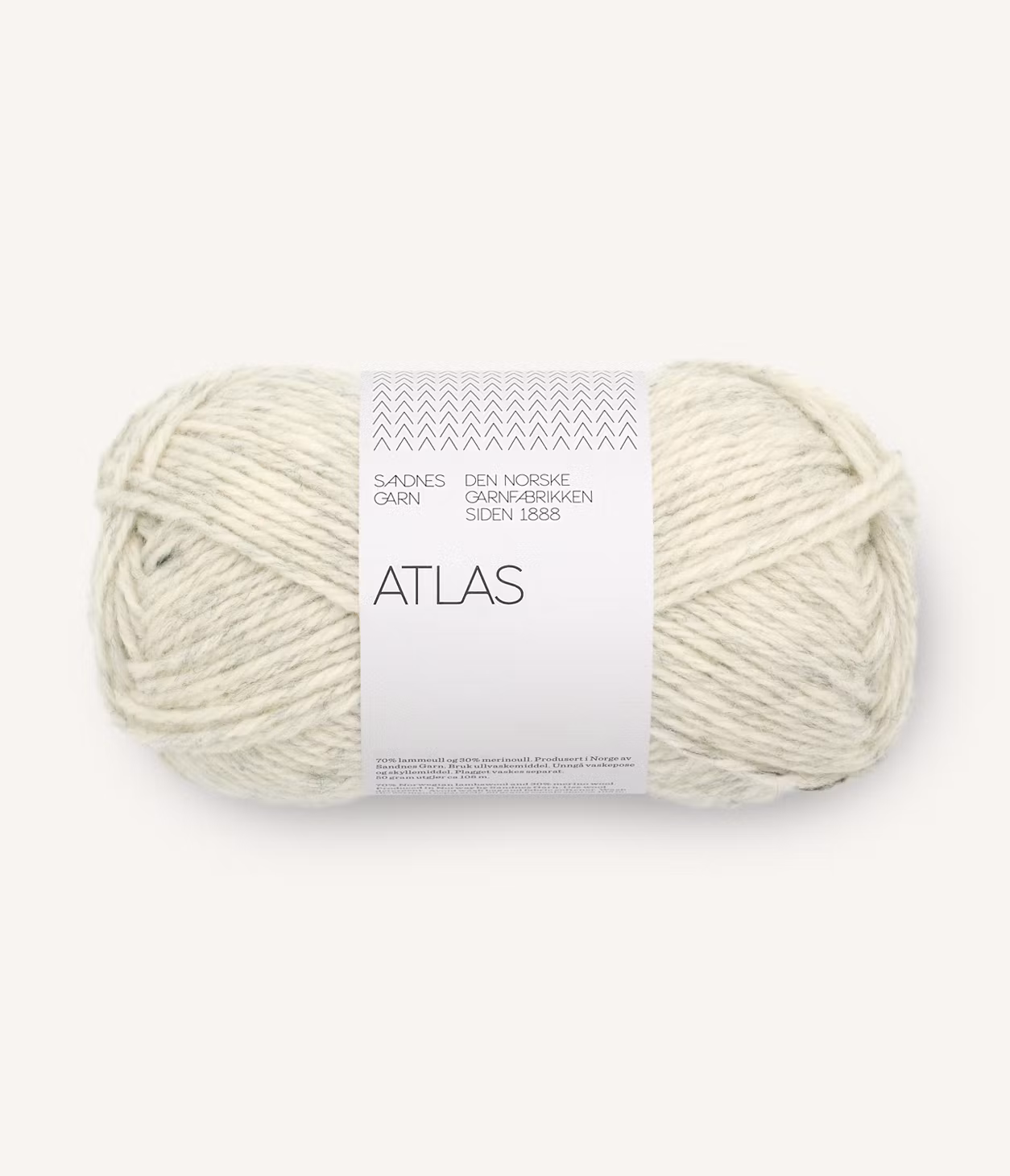 Atlas 69,- 70% lammeull og 30% merino, et deilig og luftig garn.Løpelengde: Ca. 108 meter pr. 50 gramVeiledende pinner: Pinne nr 4Strikkefasthet: 18 masker Farge 1012 natur 1021 lys gråmelert 1044 gråmelert 1055 mørk gråmelert 1099 svart 2001 butter yellow 2573 monks robe 2641 naturmelert 2650 gråbeige melert 3021 lys beige melert 3591 mørk brunmelert 4202 lotus 4219 true red 5575 marine 5824 provance blue 9072 mørk grønnmelert På lager Legg i strikkekurv Lagerbalanse: Del Les mer 70% lammeull og 30% merino, et deilig og luftig garn.Løpelengde: Ca. 108 meter pr. 50 gramVeiledende pinner: Pinne nr 4Strikkefasthet: 18 masker = 10 cmRåvare kommer fra: Norge, Argentina